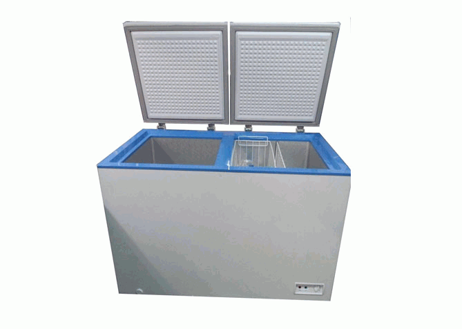 Horizental deep freezer 3-door type, suitable design for storage of vegetable and frozen food made of body inner GI and outer S.S. with front door S.S. with 3" puff insullation and kirlosker kit with temperature controller.