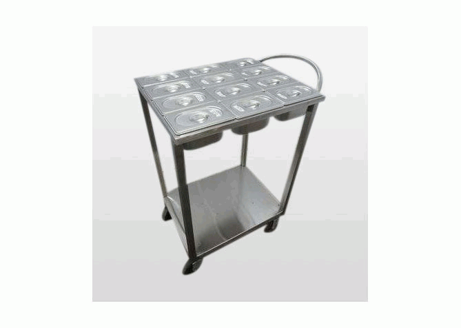 A Multipurpose Strong Transporting Unit for Any Part of The Kitchen Made Out of S.S.Heavy Gauge Sheet, It is Made 02 or 03 Shelves with Heavy Duty 6"Dia Castor Fittings